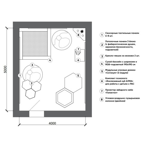 Комплект оборудования для сенсорной комнаты 20 м2